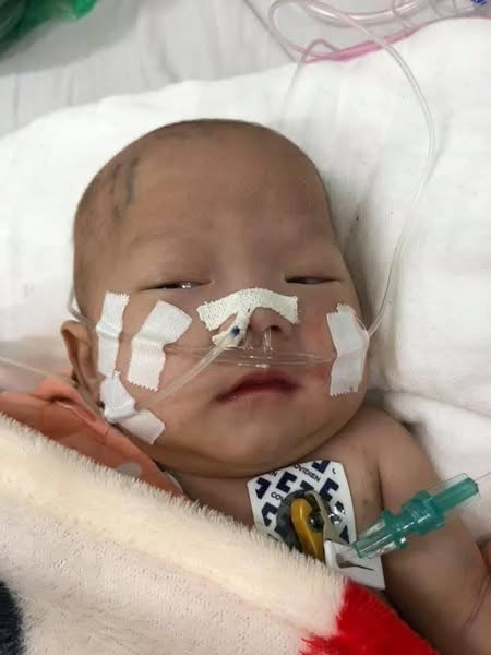 -Con tên là Nguyễn Đình Hào-sinh 14-7-2024, bị mắc bệnh ung thư não, suy giáp và suy thận. Con phát bệnh năm ngoái, nằm điều trị gần 1 năm nay tại bệnh viện nhi trung ương.