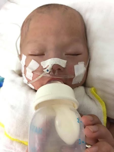 - Cách đây 1 tháng anh Hoàng là ba bé có bị tai nạn lao động, và đã mất 1 bên chân. Gia đình hiện tại rất kiệt quệ.
