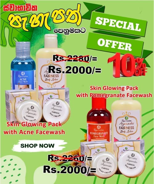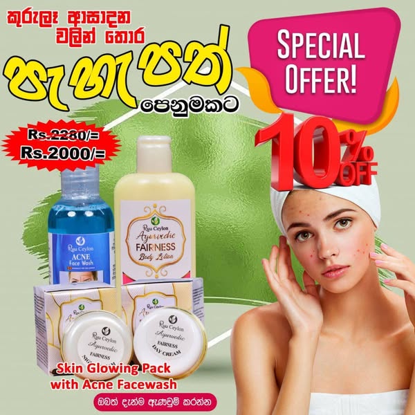 搜索关键词 skin whitening, ayurvedic skincare, fairness cream, natural skin, sri lanka cosmetics, healthy skin, glowing skin, beauty products, facial wash, herbal ingredients优势 Ayurvedic ingredients,Offers various packs for different skin types,Promises to clean, lighten, and moisturize skin,Suitable for both men and women