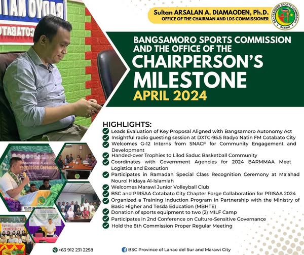 𝗝𝗨𝗦𝗧 𝗜𝗡 | As the year 2024 comes to an end, the Bangsamoro Sports Commission, under the leadership of Sultan Arsalan A. Diamaoden Ph. D. , has achieved significant milestones that reflect its commitment to promoting sports and fostering unity in the Bangsamoro Autonomous Region in Muslim Mindanao (BARMM). Throughout the year, the commission has focused on various initiatives and programs aimed at developing sports at different levels, encouraging youth participation, and enhancing the overall sports culture in the region.
