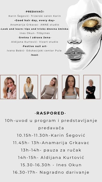 Poklanjamo ti kraljevski tretman lica (Anne Studio and Academy), frizuru koja ostavlja bez daha (KARIN HairStudio) ,manikuru bez presedana (VizArt studio ljepote) i mjesec dana treninga koji će te zauvijek osloboditi stresa (fitbyines.hr)!