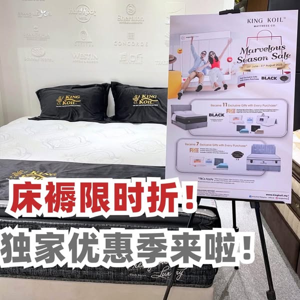 🏨从全球酒店到你家卧室🛌,KING KOIL 金可儿始终坚持为每位使用者打造⭐️五星级睡眠体验😴。🗓即日起至2025年8月31日,前往KING KOIL 门店或旗舰店尊享Marvelous Season Sale 高达30% 限时礼遇✨,旗舰店更有一对一专业睡眠顾问服务🗣,让你选对“真爱”床褥😴❤️。