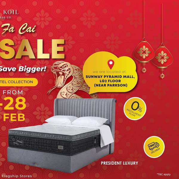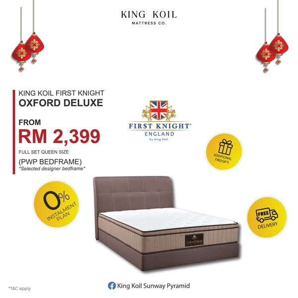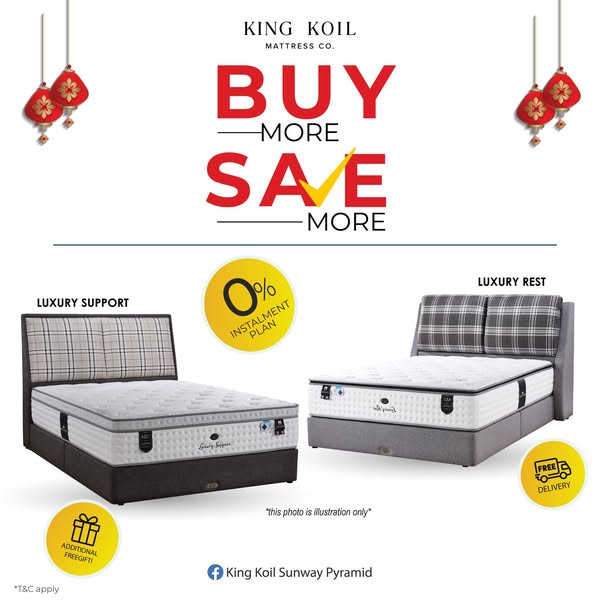 搜索关键词 King Koil Malaysia, Luxury Mattress, Hotel Mattress, Best Mattress, Chinese New Year Sale, Mattress Sale, Free Delivery, Same Day Delivery, Comfortable Sleep, Bedframe Discount优势 Premium healthy mattresses,Exclusive limited-time offers,Free gifts with purchase,Hotel Package Full Set Mattress with Bedframe,PWP Bedframe up to 70% off,Free Delivery & Installation,Same Day Delivery,15 Years Warranty,0% Installment Plan up to 12 months
