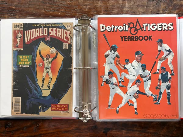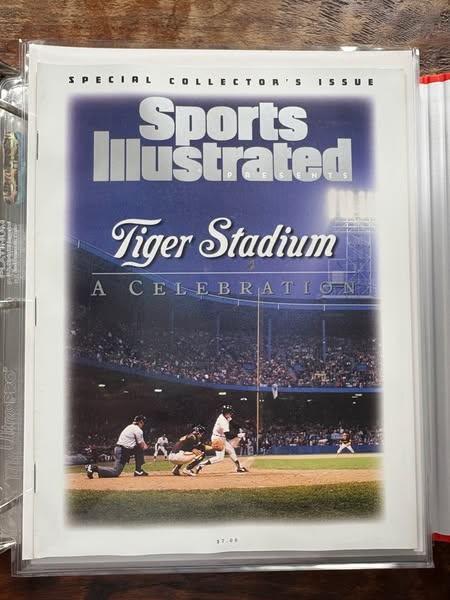 搜索关键词 sports memorabilia binder, collectible storage, baseball card binder, autograph storage, throwback binder, sports illustrated binder, Detroit Tigers memorabilia, vintage sports collectibles, collector cave storage, free Tiger Stadium magazine优势 Versatile storage for various memorabilia,Protection against tipping and wobbling,Showcases collectibles,Free "Tiger Stadium" magazine