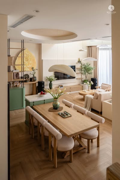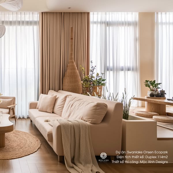 搜索关键词 interior design Vietnam, penthouse design, family home, Ecopark living, Modern Rustic style, Mộc Xinh Designs, residential architecture, home design ideas, luxury apartment, family memories优势 Showcases a real project, Swanlake Onsen Ecopark.,Focuses on family and emotional connection to home.,Highlights the "Modern Rustic" design style and comfort.,Emphasizes relaxation and well-being.,Provides contact information for inquiries.