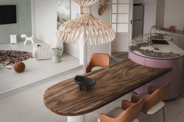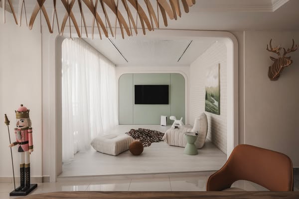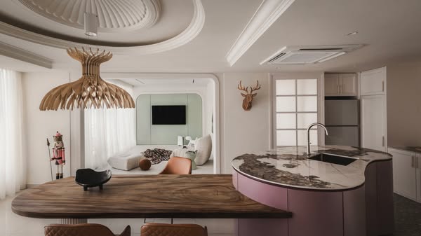 搜索关键词 Penang interior design, penthouse design, Wabi-sabi design, French style interior, modern interior, luxury interior design, woodncol furniture, earthy tones, nature views, residential design优势 Combines vintage French style and modern Wabi-sabi.,Warm and welcoming space.,Connects with nature views.,Elegant yet casual design.,Balanced composition using wood and neutral colors.