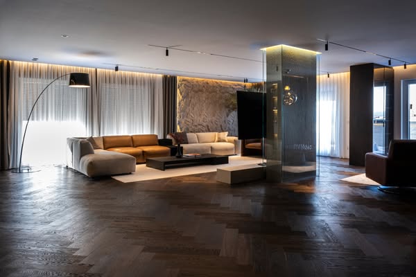搜索关键词 penthouse design, kosovo interior design, luxury apartment, modern interior, local craftsmanship, natural materials, prishtina architecture, high-end design, residential project, bespoke furniture优势 Luxurious living style,Combination of natural materials,High-quality craftsmanship,Local production,Attention to detail