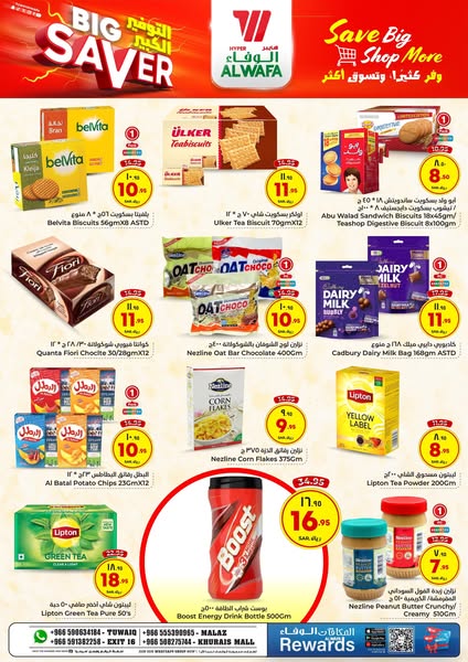 搜索关键词 Big Savings, Shopping Deals, Supermarket Offer, Alwafa Hypermarket, Limited Time Offer, Tuwaiq Supermarket, Exit16 Shopping, Malaz Deals, Khurais Mall, Food and Clothing优势 Big Savings,Unbeatable Deals,Wide Range of Products