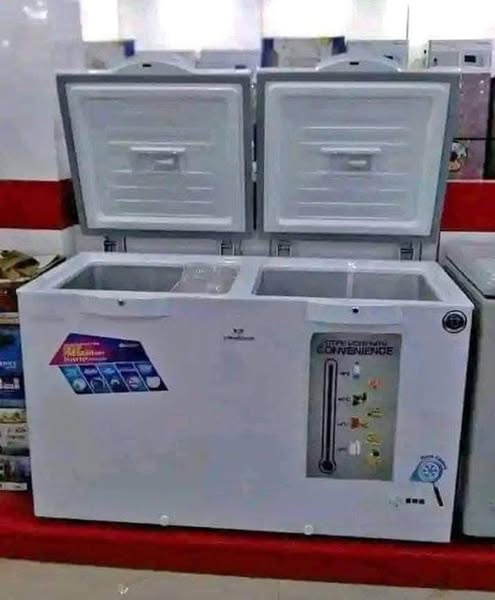 *)DOUBLE DOOR DEEP FREEZER 350litres WITH 5BULBS, 3PANNELS, AND 3BATTERIES