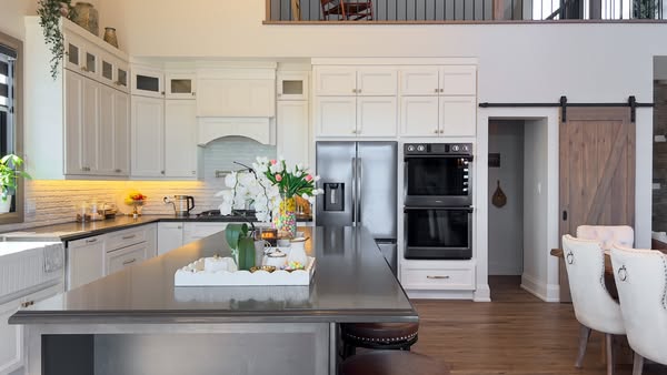 A kitchen that balances beauty and function — clean lines, fresh flowers, and room to gather. Designed by RockWood, starting at $5,999.