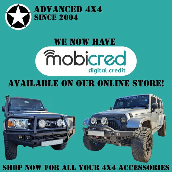 #Advanced4x4 #Payflex #Mobicred #Takealot #ShopOnlineSA #4x4Life #4x4Accessories #OverlandingSA #OffRoadReady #AdventureAwaits #Custom4x4 #RuggedAndReady #JimnyGen4 #4x4SouthAfrica #ShopNowPayLater#proudlysouthafrican