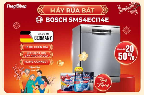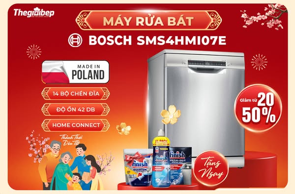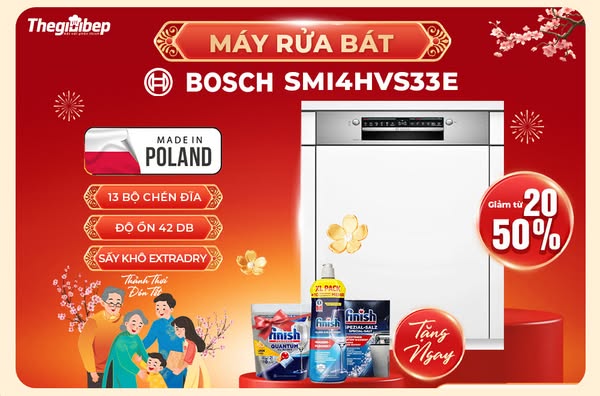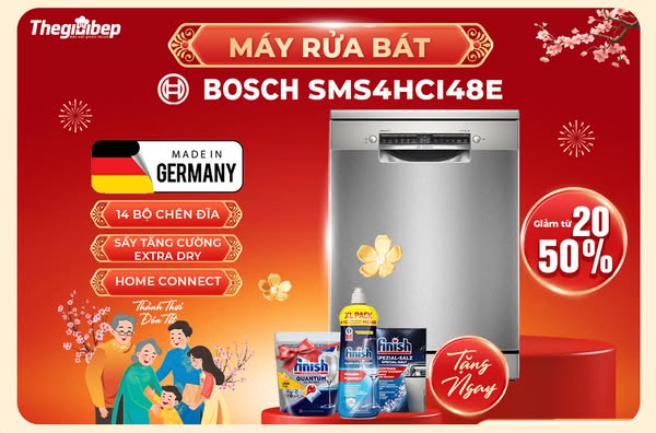 搜索关键词 Bosch dishwasher, dishwasher promotion, kitchen appliances, home appliances, Tet holiday sale, European dishwasher, imported dishwasher, Thế Giới Bếp, Bosch Vietnam, dishwasher discount优势 Genuine Bosch Dishwasher,Imported from Europe,Discount price,3-year warranty,Free detergent, salt, and rinse aid,Save time and effort during Tet holiday