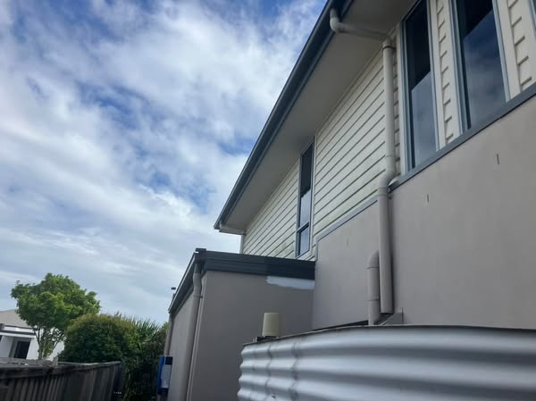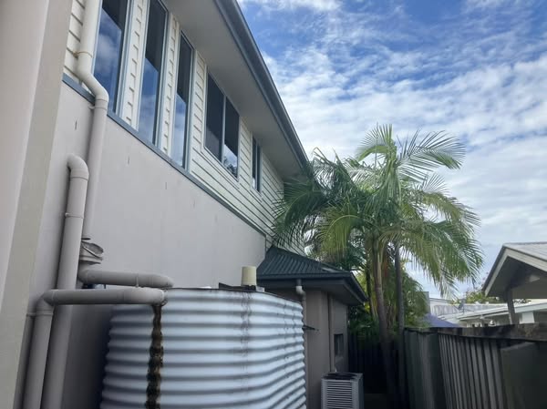 A double story house freshly painted in hope island on the Gold Coast. Gutters changed from windsray to colourbond monument and all walls changed from hogs bristle to lexicon this house has had a fresh new look.