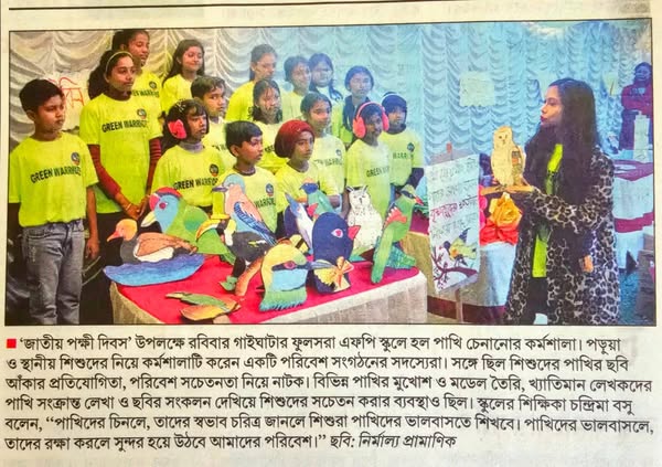 We are delighted to share the success of the Bird Conservation Fair held at Fulsara F P School, Chandpara Bazar. This event was led by our vibrant Green Warriors, the youngest champions of our NGO, under the guidance of their teacher and our esteemed founder member, Chandrima Bose.