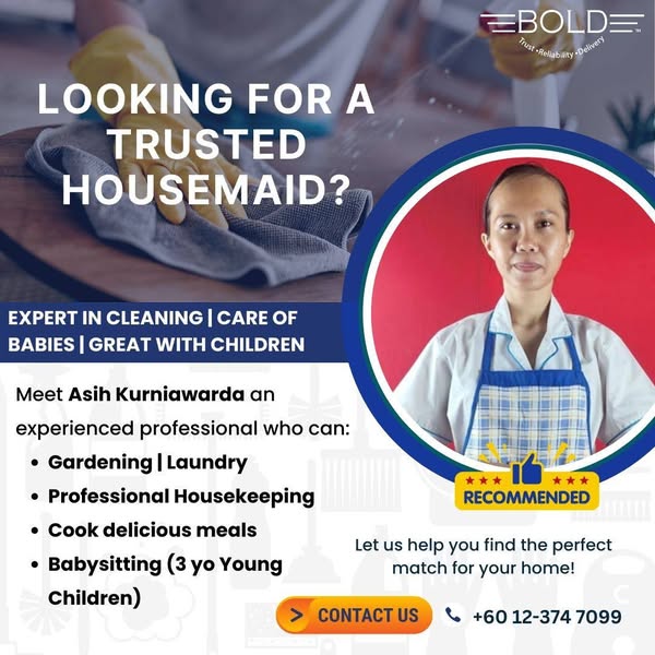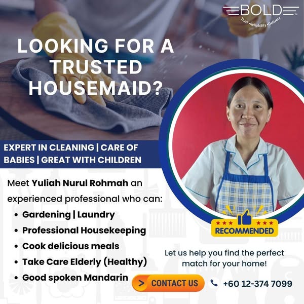 #BOLDgroup #HousemaidService #MaidsMalaysia #TrustedHelper #JTKSM795