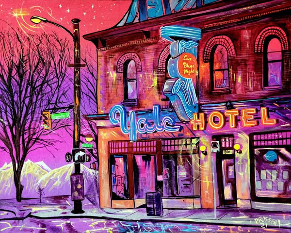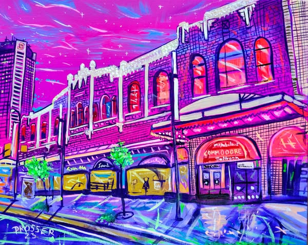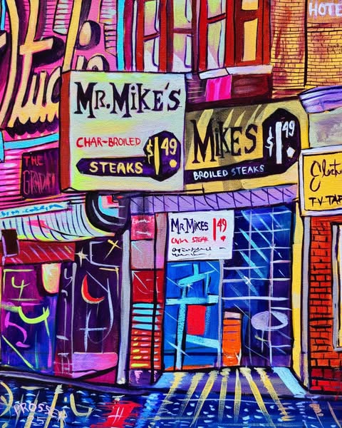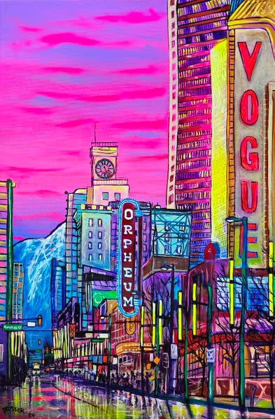 The street runs from the DT waterfront through the middle of Vancouver and many neighborhoods ending around 72 Avenue. All of these paintings are/were located on this iconic street. Acrylic on canvas.
