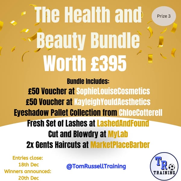 A massive thank you to the brilliant businesses/ people that have sorted these prizes! Please check out their social media accounts. They’re all exceptional at what they do.