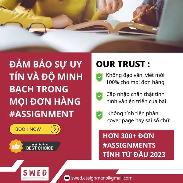 ⏱ Hãy liên lạc ngay với chúng mình và book bài sớm để chúng mình hỗ trợ #assignment của bạn nhanh và chính xác nhất nhé!