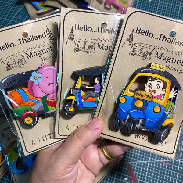 #ThailandSouvenir #HandmadeThailand #WoodMagnet #ColorfulGifts #ThaiCrafts #TravelGifts #HandpaintedMagnet #MadeInThailand