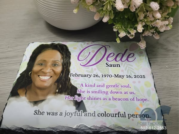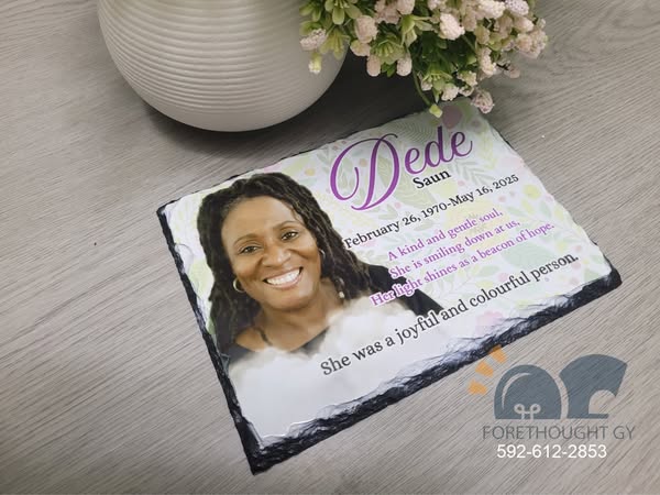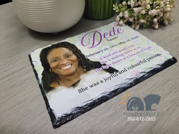搜索关键词 memorial plaque, vibrant tribute, colourful memorial, Guyana weddings, lasting memory, Forethought Guyana, personalized gifts, memorial gifts, gifts and favors, custom design优势 Vibrant and colourful design,Honours memories in a lively way,Suitable for indoor use,Potential for outdoor use (tile-like slate),Lasting tribute
