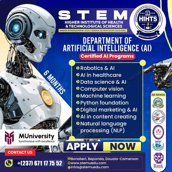 搜索关键词 ICT Training, Artificial Intelligence Education, Computer Engineering Degree, Digital Marketing Course, Data Science Program, STEM University Douala, Cameroon Education, Tech Skills Training, AI Healthcare, Robotics Education优势 Practical Skills,Job Market Fit,Comprehensive Programs,Startup Focused