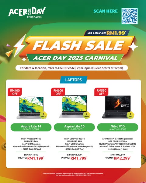 【科技迷注意⚠️Acer Day嘉年华疯狂来袭🔥8月30日-9月7日📆限时优惠指定产品最低RM1.99起等你来抢‼️🙀】