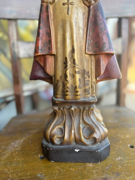 搜索关键词 Santo Nino Escayola, Maximo Vicente, Rare Religious Artifact, Antique Religious Item, Old Santo Nino, Religious Collectible, Philippine Art, Escayola Sculpture, ponixonlineshop.com, Philippine antiques优势 Rare and Old,Made by Maximo Vicente,Escayola material,Has old sticker markings