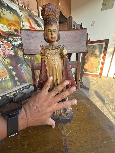 2. Rare Old Santo Nino Escayola by Maximo Vicente . mostly wood bihira ang escayola santo nino pa and old works with old sticker markings