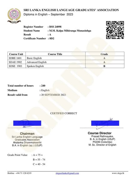 🔖ලොවම පිළිගත් ඉහළම වටිනකමකින් යුත් සහතික පත්රයක්