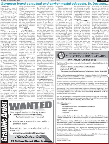 搜索关键词 Brand Consulting, Environmental Advocate, Kaieteur News, Guyana Brand, Davindra Lalltoo, Brand consultant feature, News Article, Environmental Consulting, Guyanese Brand, Consulting Services优势 Environmental Advocate,Featured in Kaieteur News,Special Feature