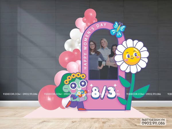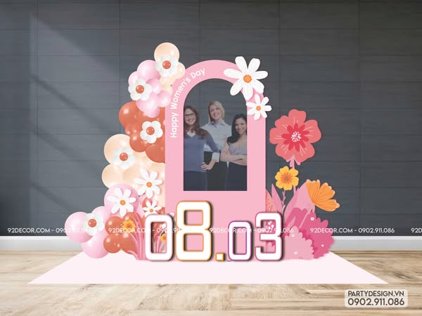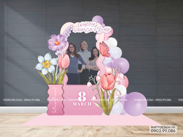 搜索关键词 International Women's Day backdrop, 8/3 event decoration, Party Design VN, event decoration, party design优势 Compact and delicate design,High-quality materials, durable and easy to install,Pastel colors and feminine floral motifs,Reasonable cost, diverse designs