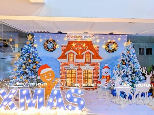 -nhận trang trí tiểu cảnh, backdrop check in chào đón giáng sinh