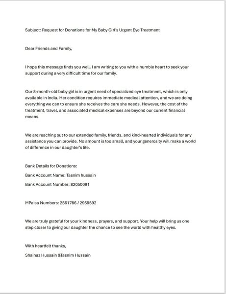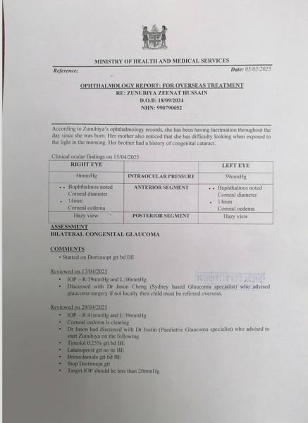 PLIZ ALL DONATE AND SHARE THIS POST, SO IT CAN REACHOUT MANY PEOPLE. My 8 months baby girl urgently need eye treatment which is not available locally in fiji , as she has very less time left , as if we make it more slow ,her eyes getting worse Day by day.