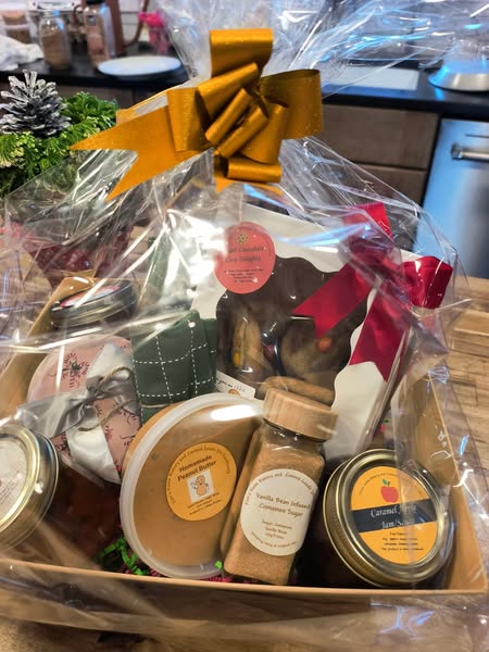 搜索关键词 holiday gift basket, homemade food gifts, hostess gift ideas, unique food presents, customized gift baskets, cookies and scones, caramel apple jam, pepper jelly, candied jalapenos, friend gift ideas优势 Variety of homemade goods,Customizable options,Perfect hostess or friend gift