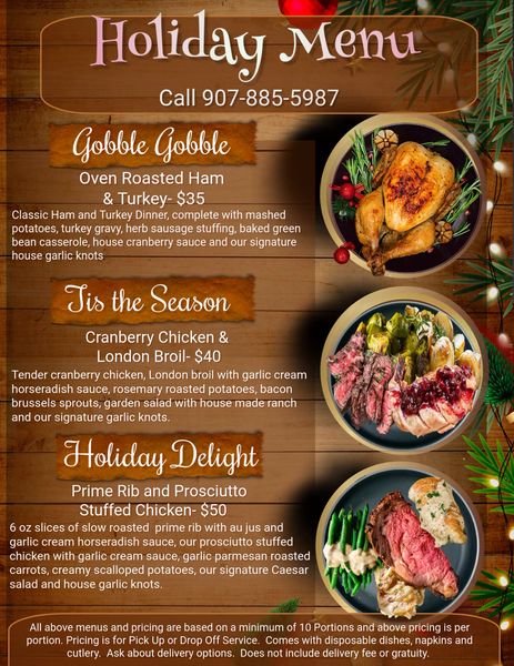 Share this with the person who is planning your Holiday Party or Office Catering! Call 907-885-5987 to order. Hurry, we only have so many spots left.