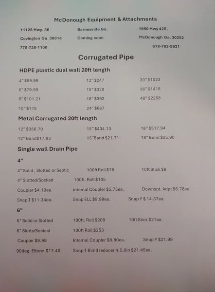 搜索关键词 HDPE pipe, drainage pipe, culvert pipe, dual wall pipe, storm drain, construction materials, water management, irrigation systems, Covington GA, McDonough GA优势 Wide range of sizes in stock (4"-48"),Pickup and delivery available,Versatile applications