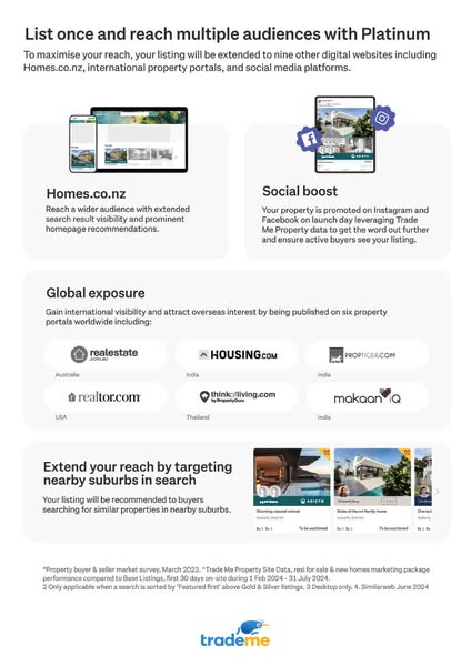搜索关键词 Trademe marketing, platinum package, real estate marketing, no upfront costs, no sale no fee, online advertising, property promotion, Trademe promotion package, real estate advertising, New Zealand marketing优势 Best marketing on Trademe,No Upfront Costs,No Sale - No Fee