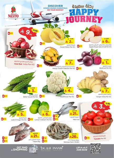 🧳✈️ HAPPY JOURNEY Deals at Nesto 🌟 ✈️🍊Grab your homecoming essentials at unbeatable prices — from fresh produce and meats to cleaning products and snacks. , find the perfect companion for every journey – all at unbeatable prices! 🎒💼 Pack more. Pay less. Only at Nesto! 🛍️