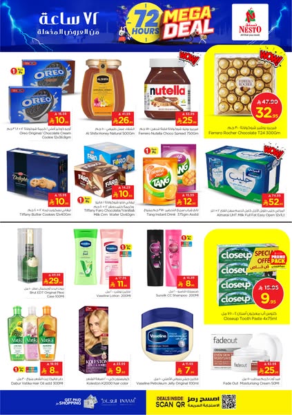 搜索关键词 Nesto Big Offer, 72 Hour Madness, Nesto KSA, Biggest Event, Unmissable Deals, KSA Shopping Festival, Riyadh Hypermarket, Dammam Hypermarket, Hypermarket Deals, Limited Time Offer优势 Biggest deals,Wildest surprises,Unmissable offers,Limited-time event (72 hours)