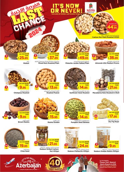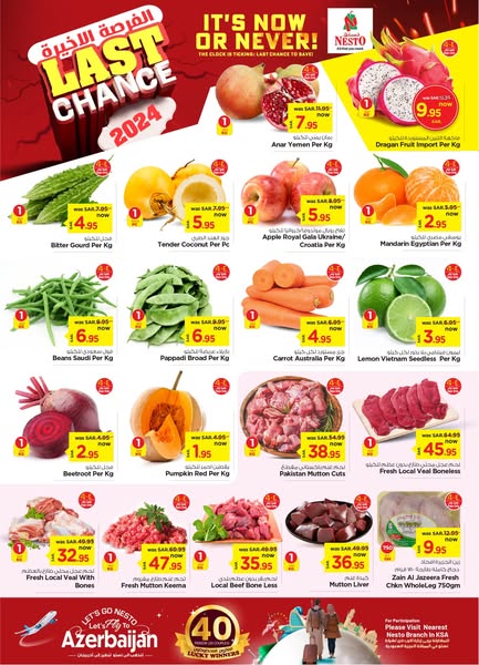 搜索关键词 Nesto Deals, Grocery Offers, Household Items, Last Chance Deals, Saudi Arabia, Hypermarket Shopping, Big Deals, Savings Deal, Limited Time Offer, Nesto Hypermarket优势 Discounted prices on groceries and household items,Wide range of product categories,Limited-time offer,Available in multiple locations