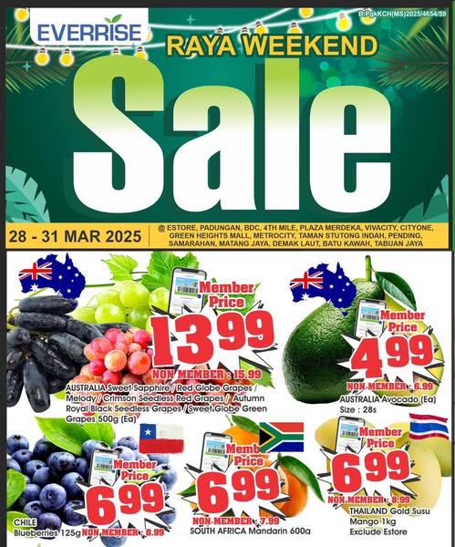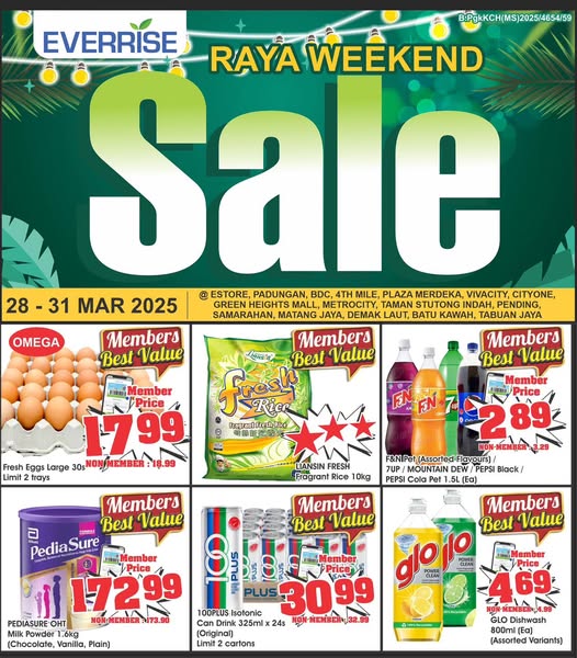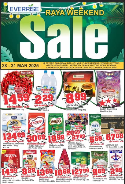 搜索关键词 Everrise Kuching, Raya Sale, Weekend Deals, Supermarket Promotion, Grocery Shopping, Member Exclusive, Online Shopping Malaysia, Festive Promotion, Household Items, Everrise Supermarket优势 Exclusive member deals,Festive themed promotion,Online shopping availability