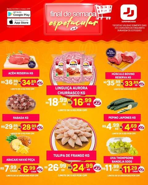 搜索关键词 weekend grocery deals, supermarket savings, grocery app, JJ Supermarket, limited time offer, discount groceries, download app, Aparecida do Taboado, local supermarket, supermarket benefits优势 Weekend savings opportunities,Multiple store locations,Exclusive app benefits