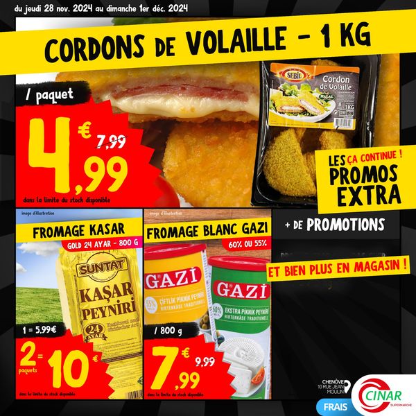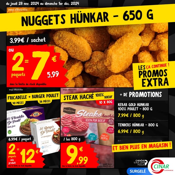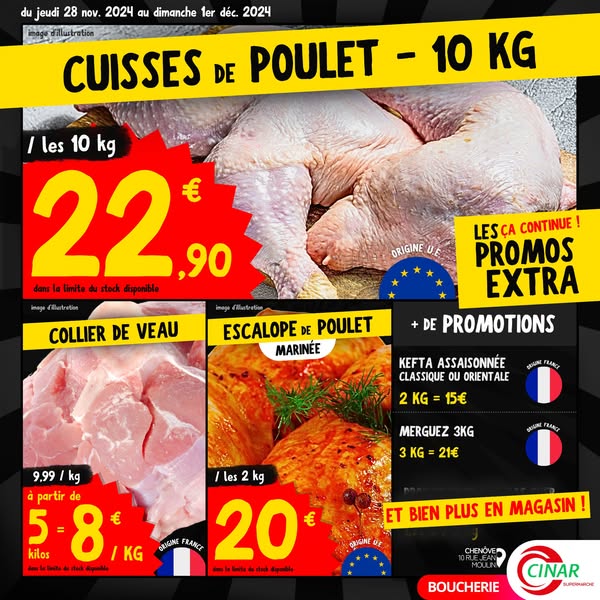 搜索关键词 supermarket promotions, grocery sale, food discount, Dijon supermarket, limited time offer, low prices, supermarket near me, supermarket Chenôve, supermarket Quetigny, Cinar boucherie优势 Wide selection of products on sale,Low prices,Specific store locations provided