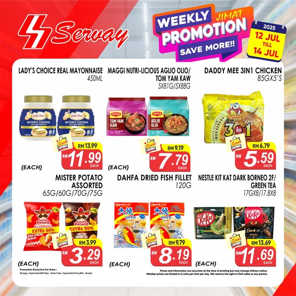 搜索关键词 Servay Hypermarket Promotions, Weekly Discounts, Miri Shopping, Hypermarket Membership, Discounted Groceries, Supermarket Sale, Servay Member Benefits, Miri Area Sale, Limited Time Offers, Retail promotions优势 Price Discount,Membership Benefits,Wide Range of Products