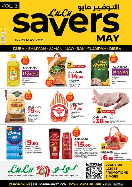 Shopping plans for the month? Start with LuLu’s #MaySavers! 🛍️😍 Enjoy exciting deals on your monthly must-haves, groceries, cookware, delicious food, and more. Available now at Dubai & Northern Emirates, in-store and online: