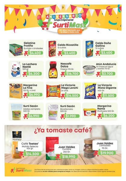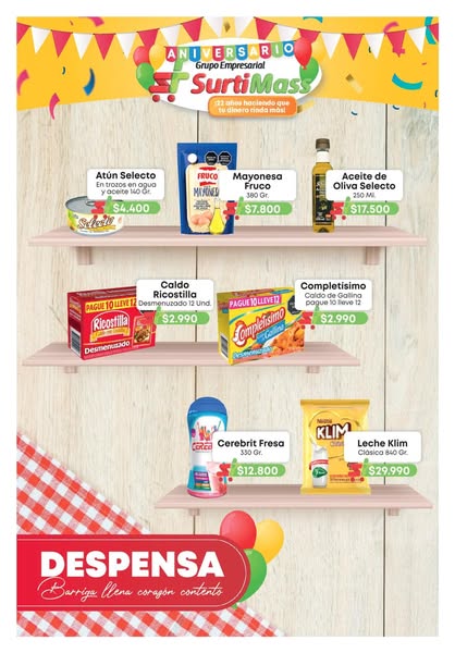 搜索关键词 Supermercados Surti Máss, anniversary celebration, grocery savings, sweepstakes prizes, colombia supermarket优势 Anniversary celebration with savings,Sweepstakes, prizes and surprises,Multiple store locations