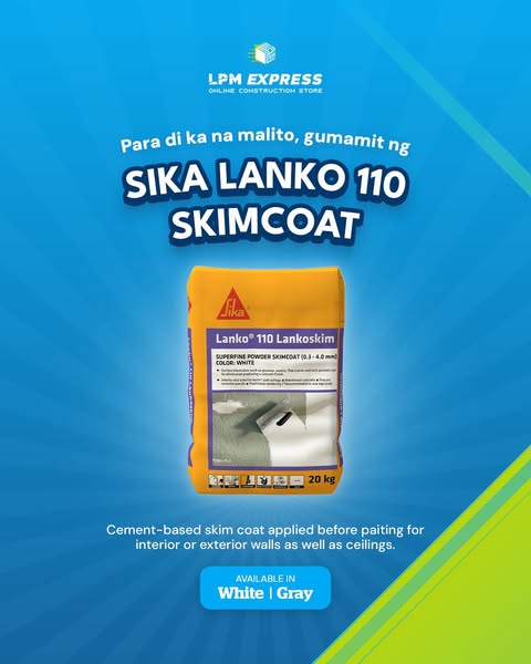 搜索关键词 Sika Lanko 110, Skimcoat Philippines, Construction Supplies, Home Improvement, DIY Materials, Wall Repair, Ceiling Repair, Construction Retail, Online Construction Supply, Discounted Skimcoat优势 Suitable for ceilings and walls,For interior and exterior use,Free trowel with purchase of 10 packs,Discounted Price,Easy Checkout with Multiple Payment Options,Same-Day Delivery/Pickup Available