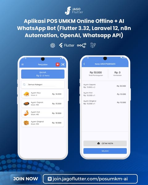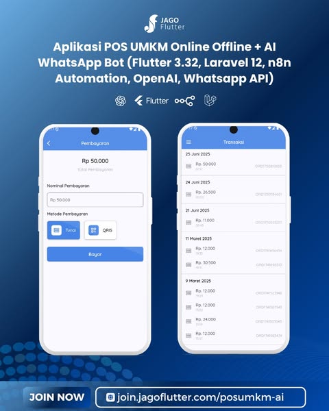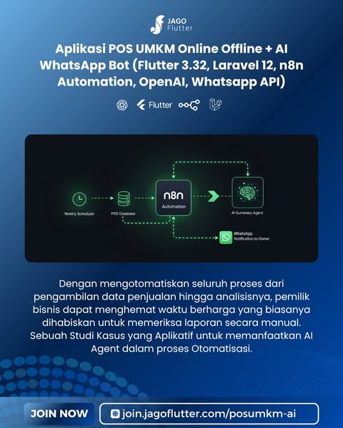 #Flutter #Laravel #AutomationTools #n8nAutomation #POSSystem #JagoFlutter #WhatsappAPI