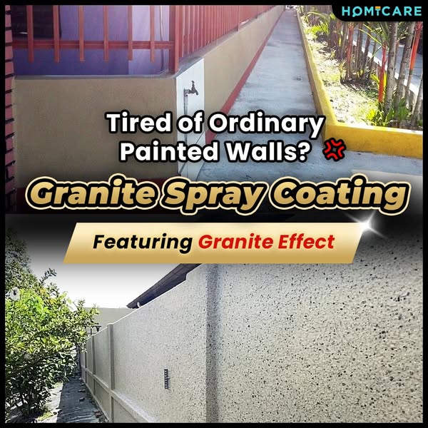 搜索关键词 granite spray coating, house painting services, exterior wall coating, mold resistant paint, long lasting paint, Homicare painting, Malaysia painting company, affordable high quality paint, self-cleansing paint, crack resistant coating优势 Mold resistant,Fade resistant,Crack resistant,Moss resistant,Long lasting (10+ years),Self-cleansing,Advanced adhesive technology,Customizable looks,Reasonable prices,5-year warranty,Free Design Site Visit Quotation,On-time delivery guarantee