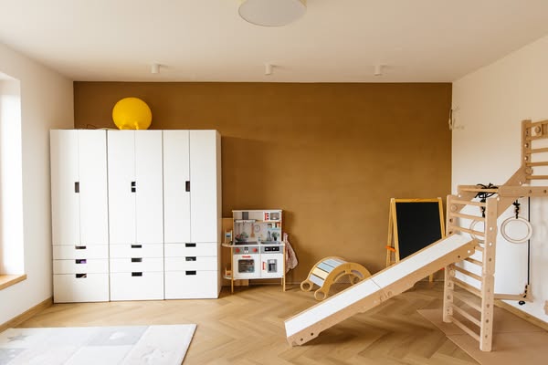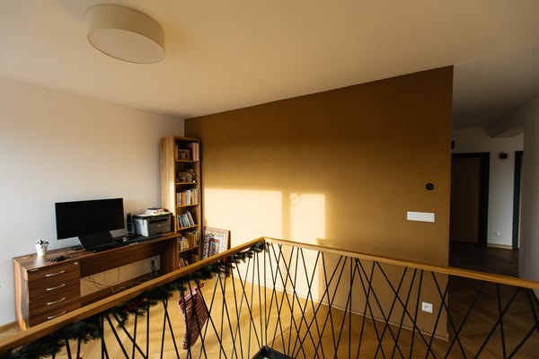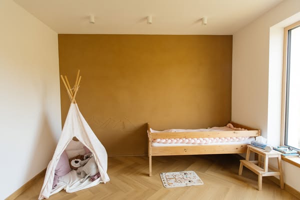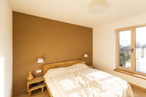V prípade, že sa rozhodnete pre prírodné hlinené omietky ako dominantné steny v jednotlivých miestnostiach, je možné ich realizovať aj ako solitéry v kombinácii s bielymi stropmi a bielymi okolitými stenami.